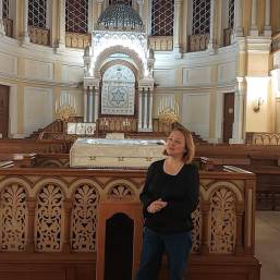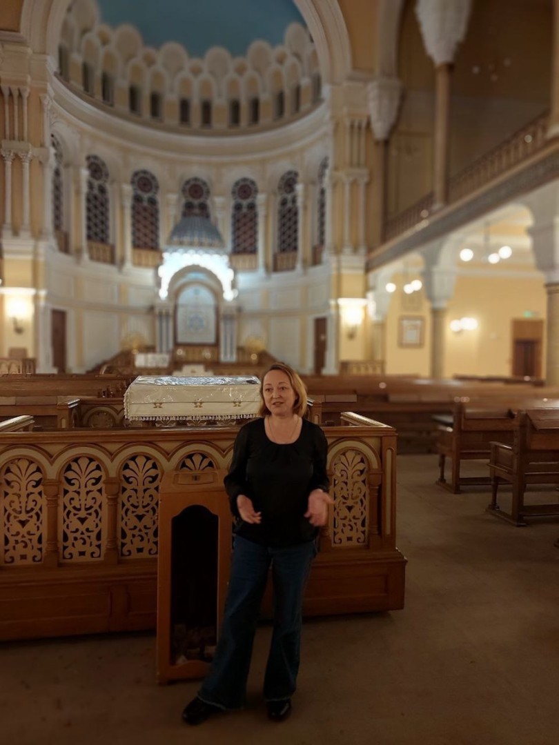 Мария Родина активно приводит в Синагогу туристические группы своей фирмы «Эклектика». После экскурсии ведет их в ресторан, где проводит самостоятельно подготовленную презентацию блюд еврейской кухни. Мало того: будучи выпускницей кафедры реставрации Художественно-промышленной академии им. Штиглица и училища культуры по специальности «дизайнер интерьеров», имея личный опыт реставрации потолков в Эрмитаже, Мария Евгеньевна сейчас готовит экскурсию по архитектуре Синагоги, которая, уверен, будет пользоваться успехом у наших посетителей.
